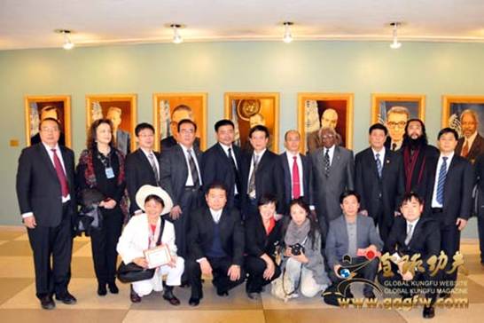 2010年10月21日晚上六点在美国纽约联合国总部大厦举行纪念联合国成立65周年招待晚宴,联合国秘书长潘基文,联合国 副秘书长赤阪清隆、联合国友好协会主席诺尔•布朗博士会见中国武术协会副主席、全球功夫专家委员会主席兼CEO傅彪先生。 |