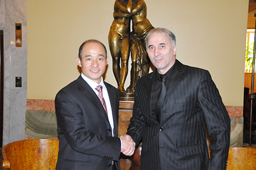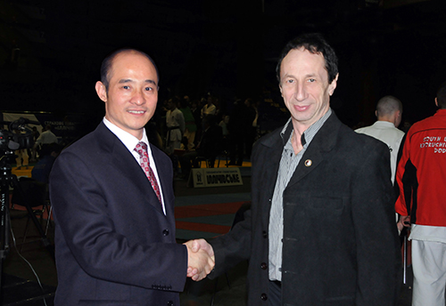 联合国友好使者、中国武术协会特邀副主席、国际功夫联合会主席、全球金融集团总裁傅彪先生会见国际功夫联合会副主席兼欧洲功夫联合会主席尼克莱先生。 |