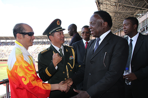 津巴布韦民盟政治局委员、法律事务书记兼国防部长埃默森·姆南加古瓦会见联合国友好使者、中国武术协会特邀副主席、国际功夫联合会主席、全球金融集团总裁傅彪先生,中国驻津巴布韦大使馆武官琚鸿彬陪同。 |