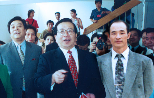 2001年6月30日我校表演队员参加中组部"七月的赞歌"文艺晚会时,原国家副主席(时任中组部部长)曾庆红亲切接见傅彪先生。 |