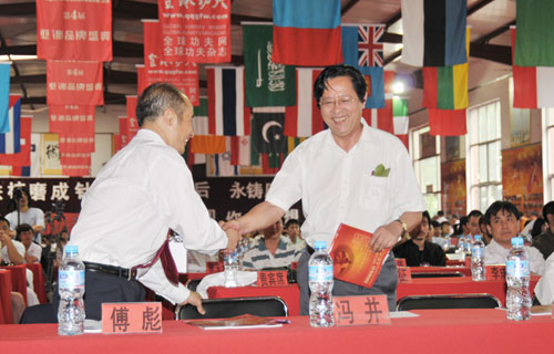 联合国友好使者、中国武术协会特邀副主席、国际功夫联合会主席、全球金融集团总裁傅彪先生会见国际功夫联合会主席兼俄罗斯功夫协会主席卡美力。 |