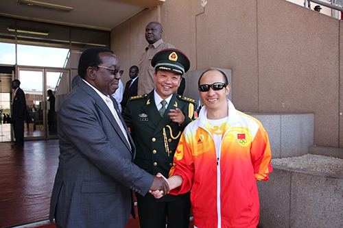 津巴布韦民盟政治局委员、法律事务书记兼国防部长埃默森·姆南加古瓦会见联合国友好使者、中国武术协会特邀副主席、国际功夫联合会主席、全球金融集团总裁傅彪先生,中国驻津巴布韦大使馆武官琚鸿彬陪同。 |