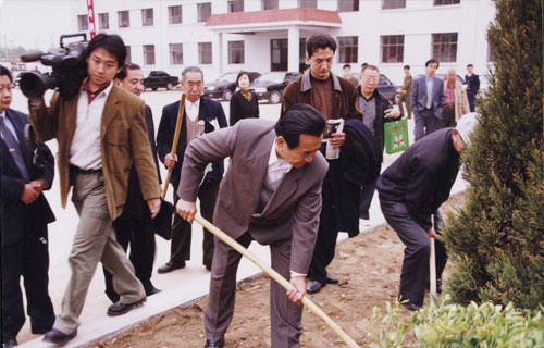 1999年5月18日全国人大副委员长铁木尔·达瓦买提参加365bet国际赌场新校落成典礼活动时亲手植树。 |