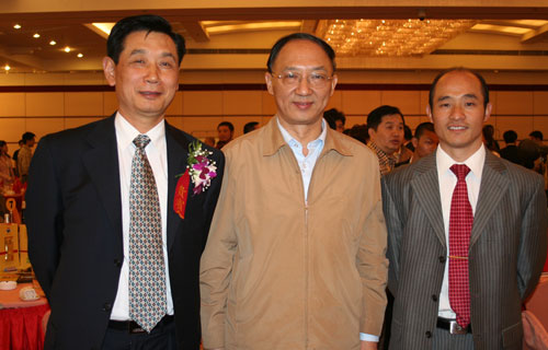 傅彪校长与国家体育总局局长刘鹏(中)、原重庆市副市长、北京重庆企业商会会长陈元虎(左)合影 |