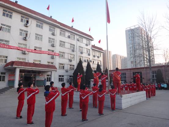 二、升国旗、(奏)唱国歌、行注目礼、少先队行队礼。