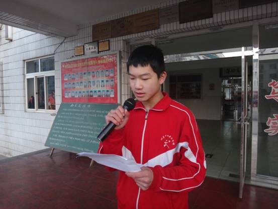 三、有请 初二(3)班 管世俊 同学国旗下讲话。