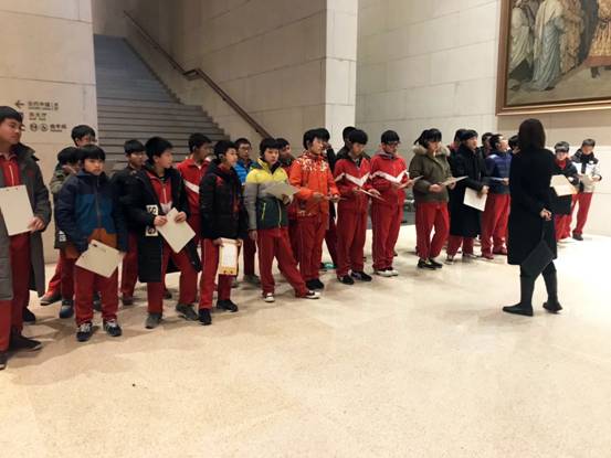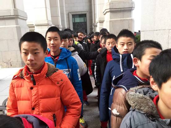 为落实市政府办公厅下发的《北京市中小学培育和践行社会主义核心价值观实施意见》中提出的,每个学生在中小学学习期间至少参加一次天安门广场升旗仪式,分别走进一次国家博物馆、首都博物馆、抗日战争纪念馆,即“四个一”活动的要求,我校初二年级师生于2017年12月28日走进国家博物馆进行实践学习。