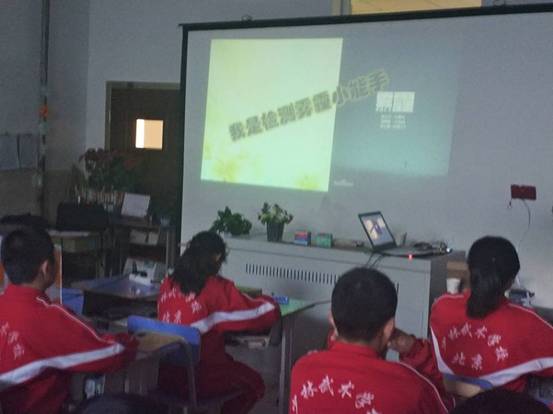 教室内,面对一堆的雾霾装置零件,同学们表现出非常浓厚的兴趣。如何组装呢?先听听授课教师的专业技术讲座吧,哈!同学们听的兴致勃勃,千万不要眨眼啊。