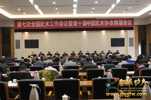 全球功夫网讯 2014年2月25至26日,第七次全国武术工作会议暨第十届中国武术协会换届会议在山东省淄博市隆重召开。中国武协领导,各省、自治区、直辖市武术分管领导及地方武术团体负责人,重点高校武术学院院长,全国武术之乡负责人,以及总局武术研究院专家委员会部分专家,共百余人出席了此次会议。