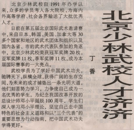 北京少林武校人才济济(中国体育报2004-09-02)